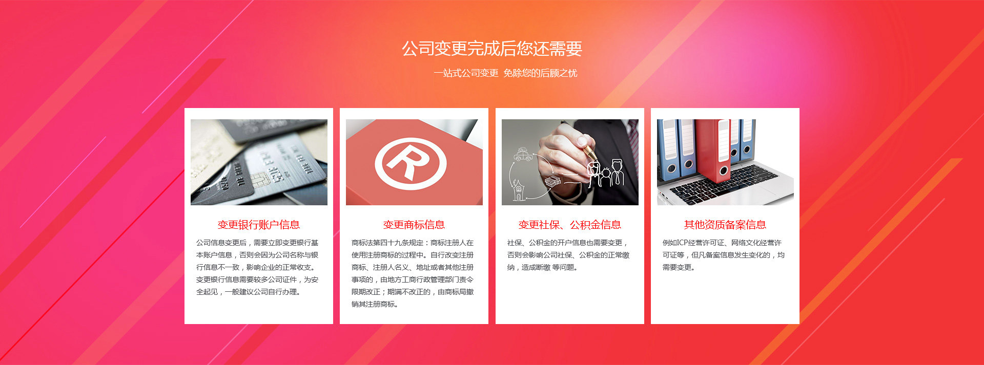 業(yè)務涉及:代辦各種營業(yè)執(zhí)照(商貿(mào)型、服務型、科技型、實業(yè)型企業(yè)等)及會計記賬(建賬建制、稅收籌劃、納稅申報、整理舊帳、所得稅匯算等)等咨詢;我公司以誠信為本,期待與您真誠合作!